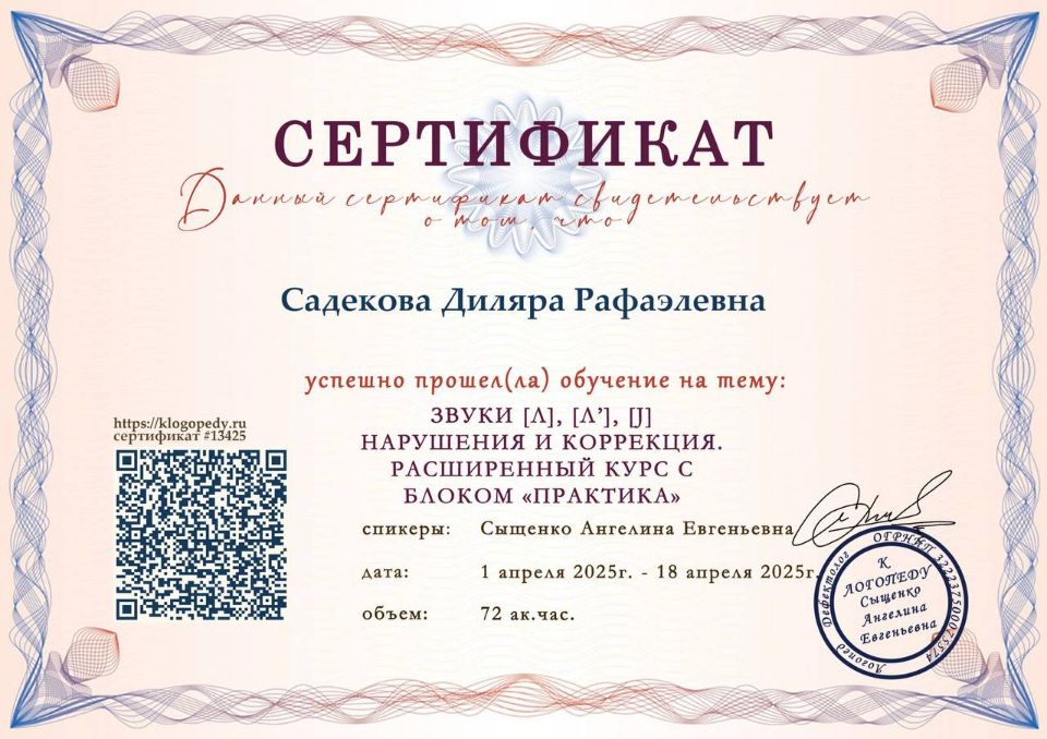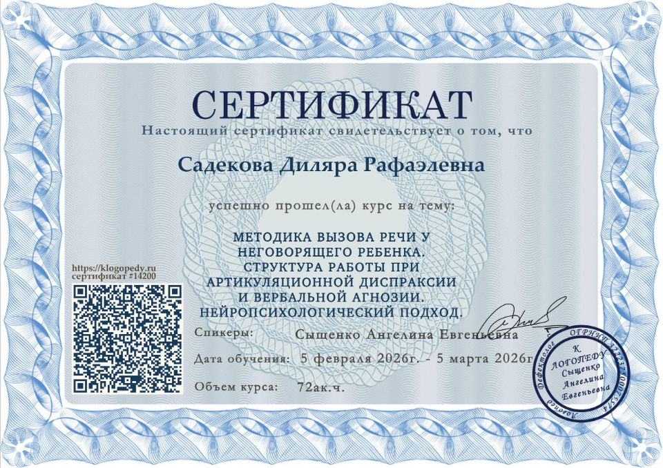 Практикующий специалист с опытом работы с детьми с ОВЗ. Постоянно повышает свою квалификацию, проходит актуальные курсы повышения квалификации.